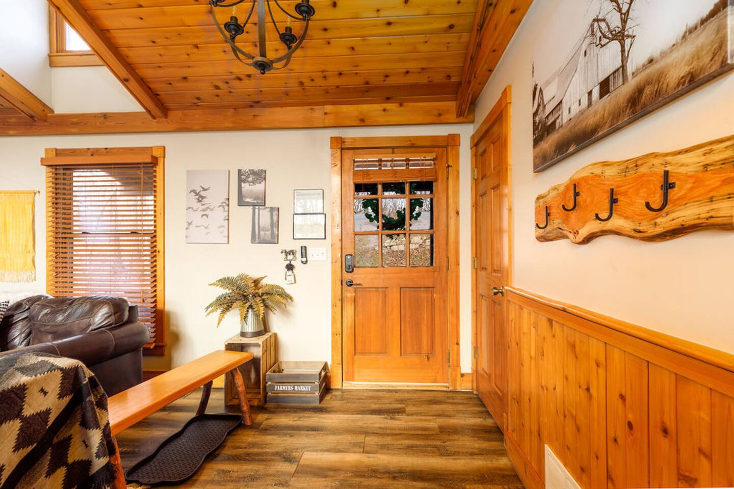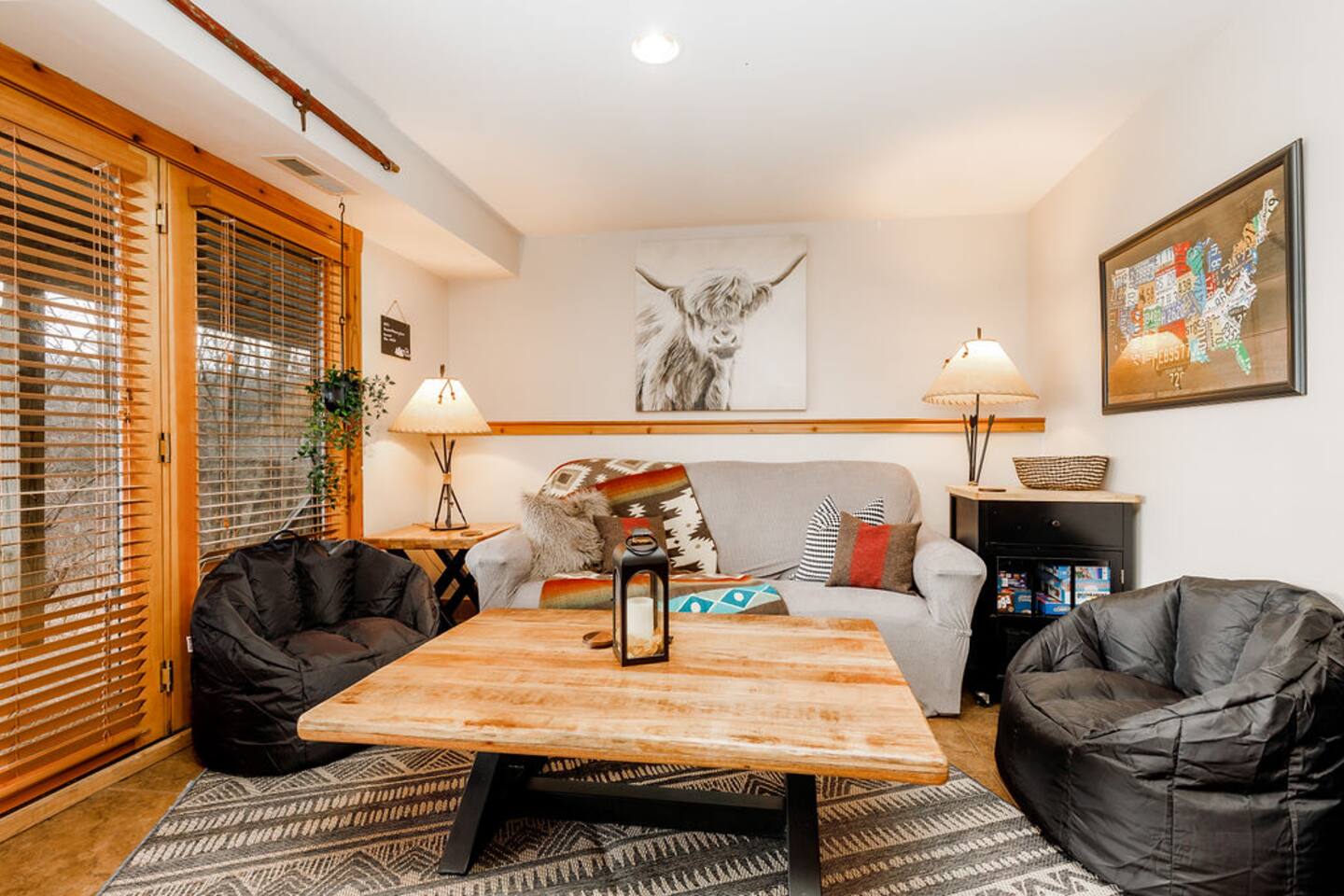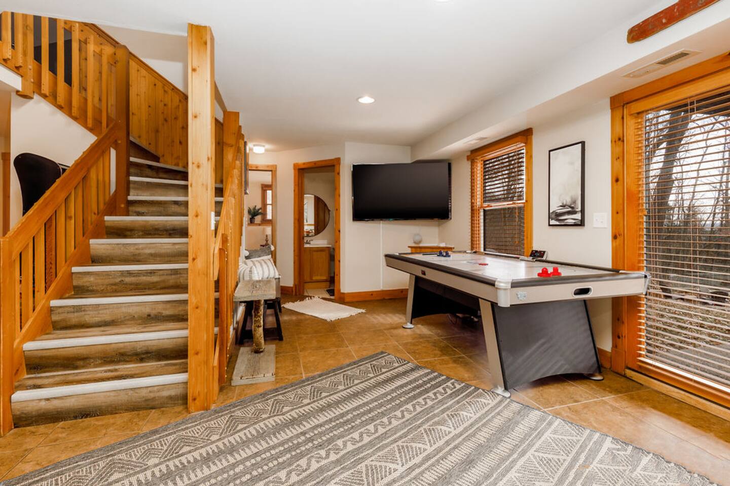 Ideal for large families or multiple couples | Family run | Private location | Hot tub | Fast WiFi | Paved Road access | Fire pit with Free Wood | Indoor Gas Fireplace | Free breakfast Hawk's Hideaway has 4 bedrooms, and 3.5 baths. The home designed by akm designs with modern rustic design. Many added luxuries throughout to make it comfortable for everyone! Main Floor: -Large open seating/dining area with a full kitchen to enjoy with family or friends. -Half bath -Hot tub and patio table/grill located on separate decks. -Primary bedroom: Large bedroom with a king bed and attached bathroom with jetted tub and shower. -Kitchen: fully equipped, drip coffee maker, Keurig, cooking basics, dishwater & silverware for 20 (10 in the dishwasher, 10 on the table), stainless steel appliances, blender, toaster, waffle maker, spices, free breakfast with waffle mix and syrup available Lower Level: -Seating area with games (air hockey, arcade, board games, and darts) and 3 bedrooms. -Bedroom 2: 2 queens -Bedroom 3: 1 queen -Bedroom 4: 1 queen -Bathrooms- 2 bathrooms with shower/tub combinations. On the lower level, you can walk out patio doors to the yard and play yard games or enjoy the amazing fire pit. -Hammock swing chairs, egg chair, and benches -New yard games including croquet, bocce ball, giant connect 4, yard dice, ring toss General: Central A/C & heating, linens and towels provided, washer/dryer Outside: -Front deck with seating for four -Back elevated deck with table for 10 -Hot tub on elevated screened porch -Fire pit (free wood) -Yard games and seating in back yard -Private 1 acre property deep to woods- can see side neighbors in winter Child amenities: -High chair -Pack and play -Plastic plates, bowls, cups, and silverware -Young child books and toys -Lawn area With plenty of activities to choose from at Hawk's Hideaway, enjoy this home base to all of the golfing, hiking, skiing, horseback riding, Pickleball (4+ rackets and balls provided!) and outdoor activities this area provides!