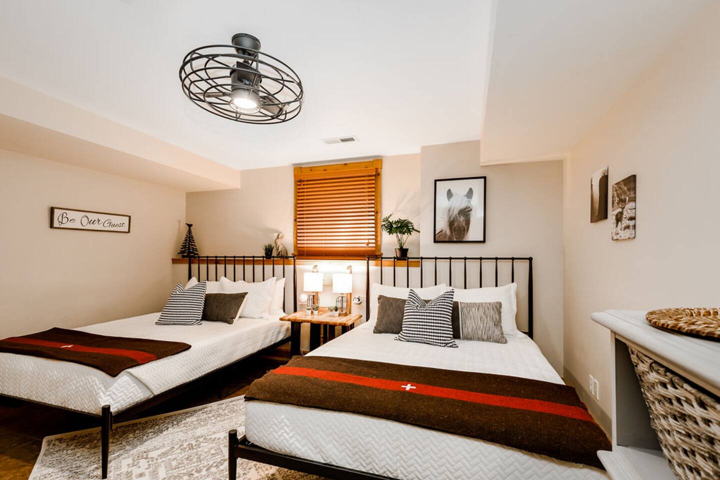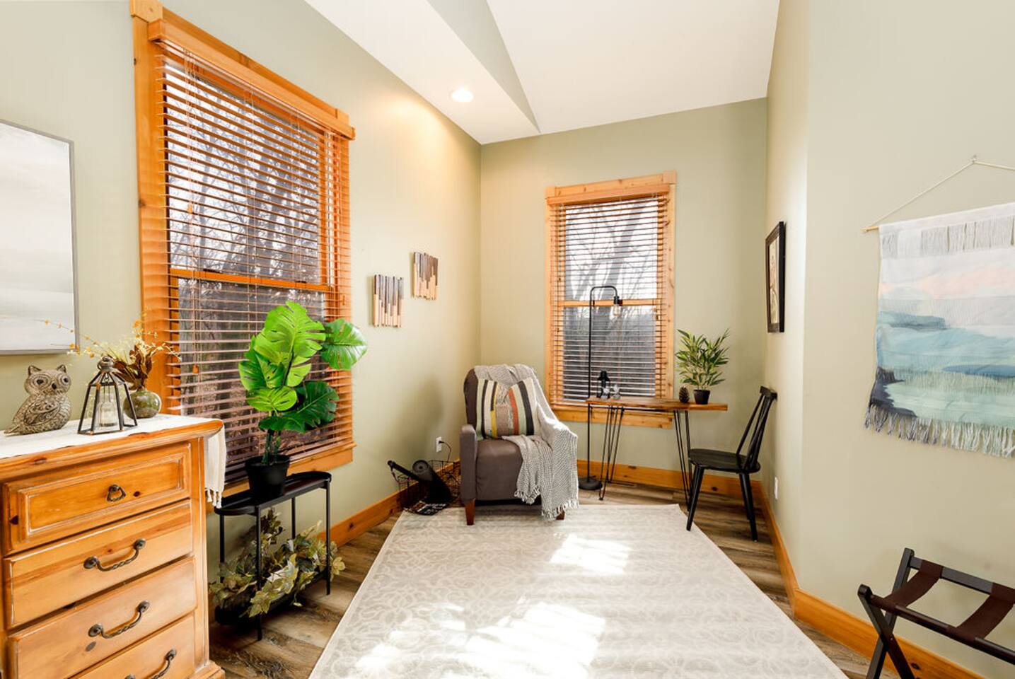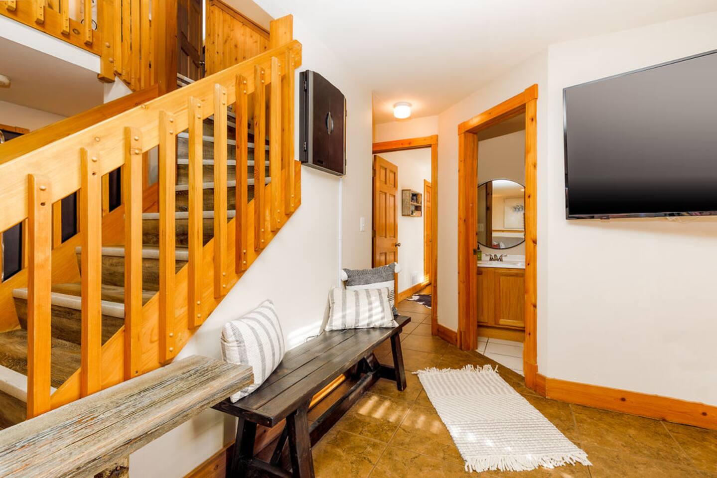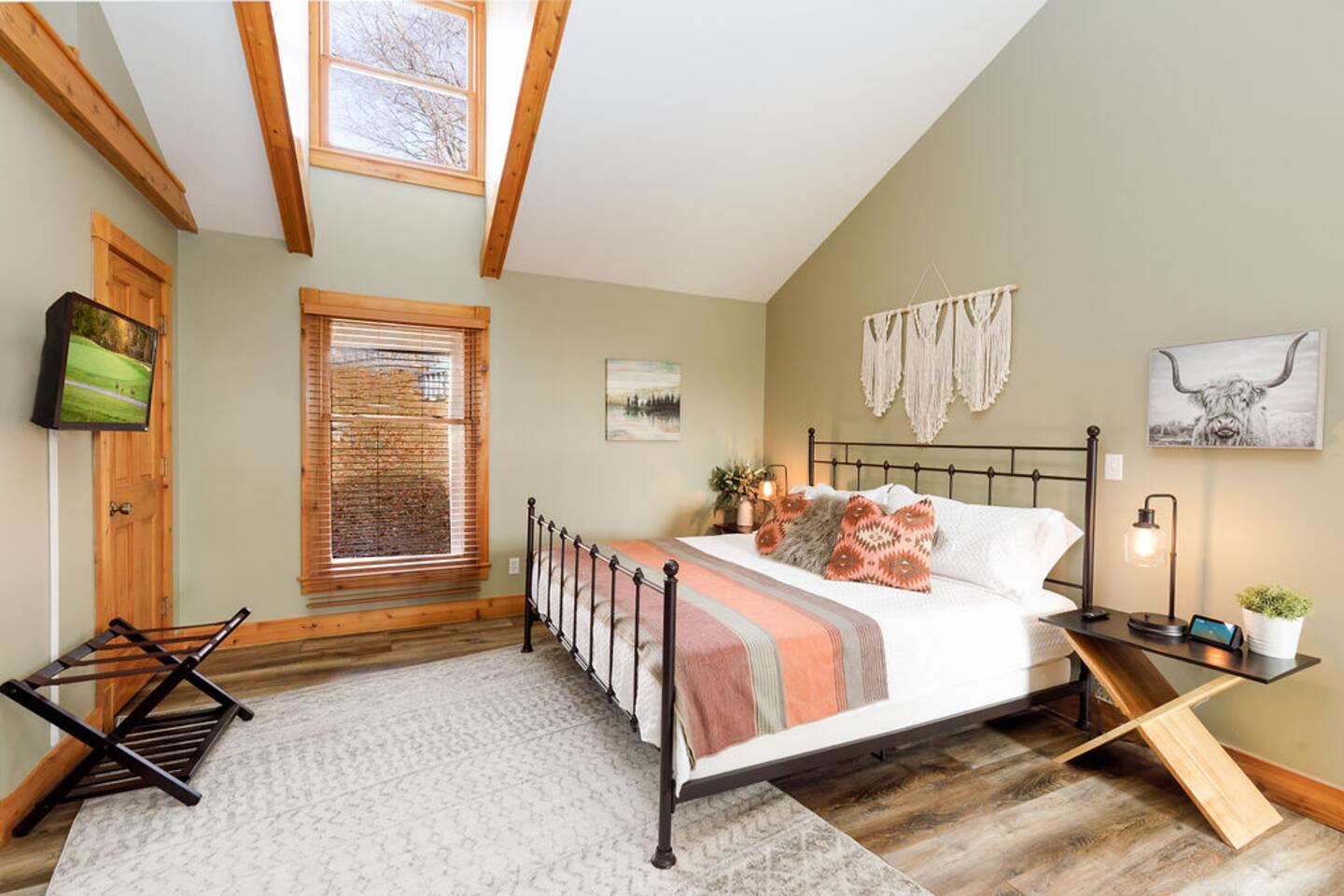 Ideal for large families or multiple couples | Family run | Private location | Hot tub | Fast WiFi | Paved Road access | Fire pit with Free Wood | Indoor Gas Fireplace | Free breakfast Hawk's Hideaway has 4 bedrooms, and 3.5 baths. The home designed by akm designs with modern rustic design. Many added luxuries throughout to make it comfortable for everyone! Main Floor: -Large open seating/dining area with a full kitchen to enjoy with family or friends. -Half bath -Hot tub and patio table/grill located on separate decks. -Primary bedroom: Large bedroom with a king bed and attached bathroom with jetted tub and shower. -Kitchen: fully equipped, drip coffee maker, Keurig, cooking basics, dishwater & silverware for 20 (10 in the dishwasher, 10 on the table), stainless steel appliances, blender, toaster, waffle maker, spices, free breakfast with waffle mix and syrup available Lower Level: -Seating area with games (air hockey, arcade, board games, and darts) and 3 bedrooms. -Bedroom 2: 2 queens -Bedroom 3: 1 queen -Bedroom 4: 1 queen -Bathrooms- 2 bathrooms with shower/tub combinations. On the lower level, you can walk out patio doors to the yard and play yard games or enjoy the amazing fire pit. -Hammock swing chairs, egg chair, and benches -New yard games including croquet, bocce ball, giant connect 4, yard dice, ring toss General: Central A/C & heating, linens and towels provided, washer/dryer Outside: -Front deck with seating for four -Back elevated deck with table for 10 -Hot tub on elevated screened porch -Fire pit (free wood) -Yard games and seating in back yard -Private 1 acre property deep to woods- can see side neighbors in winter Child amenities: -High chair -Pack and play -Plastic plates, bowls, cups, and silverware -Young child books and toys -Lawn area With plenty of activities to choose from at Hawk's Hideaway, enjoy this home base to all of the golfing, hiking, skiing, horseback riding, Pickleball (4+ rackets and balls provided!) and outdoor activities this area provides!