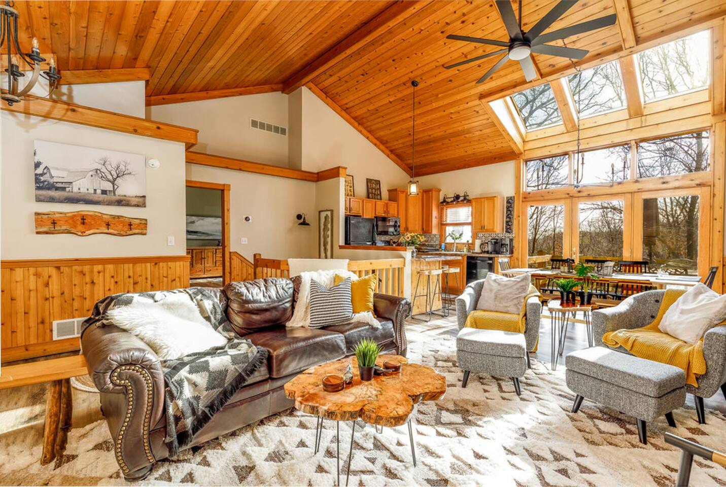 Escape to our cozy luxe cabin in Galena Territory, the perfect retreat for fall! Start your mornings sipping coffee by the gas fireplace, then warm up each evening in the hot tub! Enjoy friendly competition with arcade games, board games, air hockey, and darts. With 8 amenity cards, you can access the owner’s club for swimming and exercise including indoor pickle ball-rackets and balls at the house! Experience relaxation and adventure in this tranquil haven—your unforgettable getaway awaits!