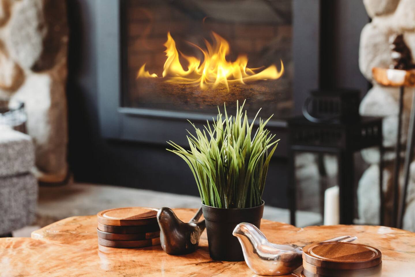 - Indoor fireplace