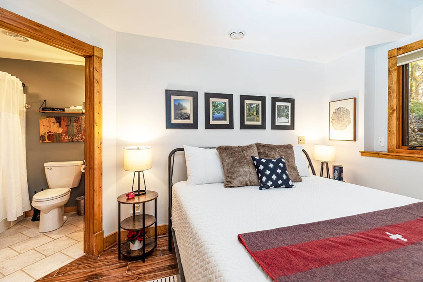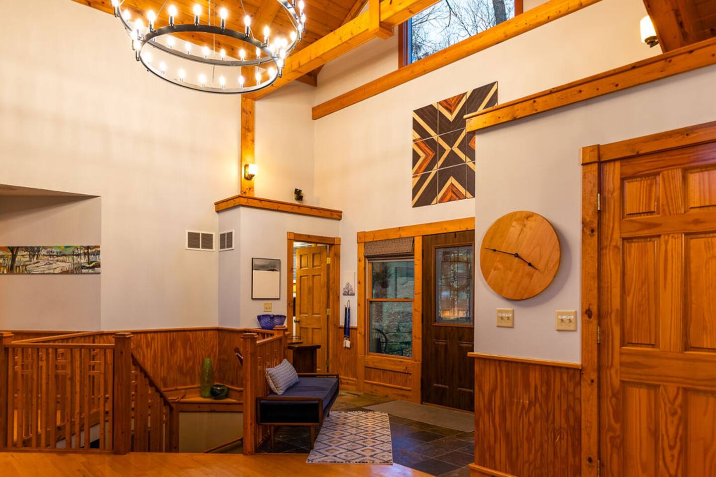 Ideal for large families or multiple couples | Family run | Private location | Hot tub | Fast WiFi | Paved Road access | Fire pit with Free Wood | Indoor Wood Fireplace Lookout Lodge has 4 bedrooms, and 3.5 baths. The home designed by akm designs with contemporary rustic design. Many added luxuries throughout to make it comfortable for everyone! Main Floor: -Large open seating/dining area with a full kitchen to enjoy with family or friends. -Half bath -Screened porch with seating for 8+ and games (Large Connect 4, yard dice, big Jenga!) -Outdoor Dining table for 8+ and gas grill -Primary bedroom: Large bedroom with a king bed and attached bathroom with large two-head shower. -Kitchen: very fully equipped, drip coffee maker, Keurig, cooking basics (oil, spices), dishwater & silverware for 12, stainless steel appliances, blender, toaster, spices, waffle maker, mix, and syrup for breakfast! Lower Level: -Patio with screen porch 8 person hot tub -Seating area with games (air hockey, arcade, board games, and darts) and 3 bedrooms. -Bedroom 2: 2 twins and bunkbed (2 twins) -Bedroom 3: 1 king -Bedroom 4: 1 king (attached bath with shower/tub combination) -Bathrooms- 2 bathrooms, one in hallway with shower stall, one attached to Bedroom 3 with shower/tub General: Central A/C & heating, linens and towels provided, washer/dryer Outside: -Upper front yard with fire pit with 8+ seating -Front deck with seating for four -Back elevated deck with table for 8+ (added chairs) -Hot tub on screened porch -Fire pit (free wood) -Yard games (bean bags, yard dice, jenga) -Private 1 acre property deep to woods- can see side neighbors in winter Child amenities: -High chair -Pack and play -Plastic plates, bowls, cups, and silverware -Young child books and toys -Lawn area With plenty of activities to choose from at Lookout Lodge, enjoy this home base to all of the hiking, skiing, horseback riding, and outdoor activities this area provides!