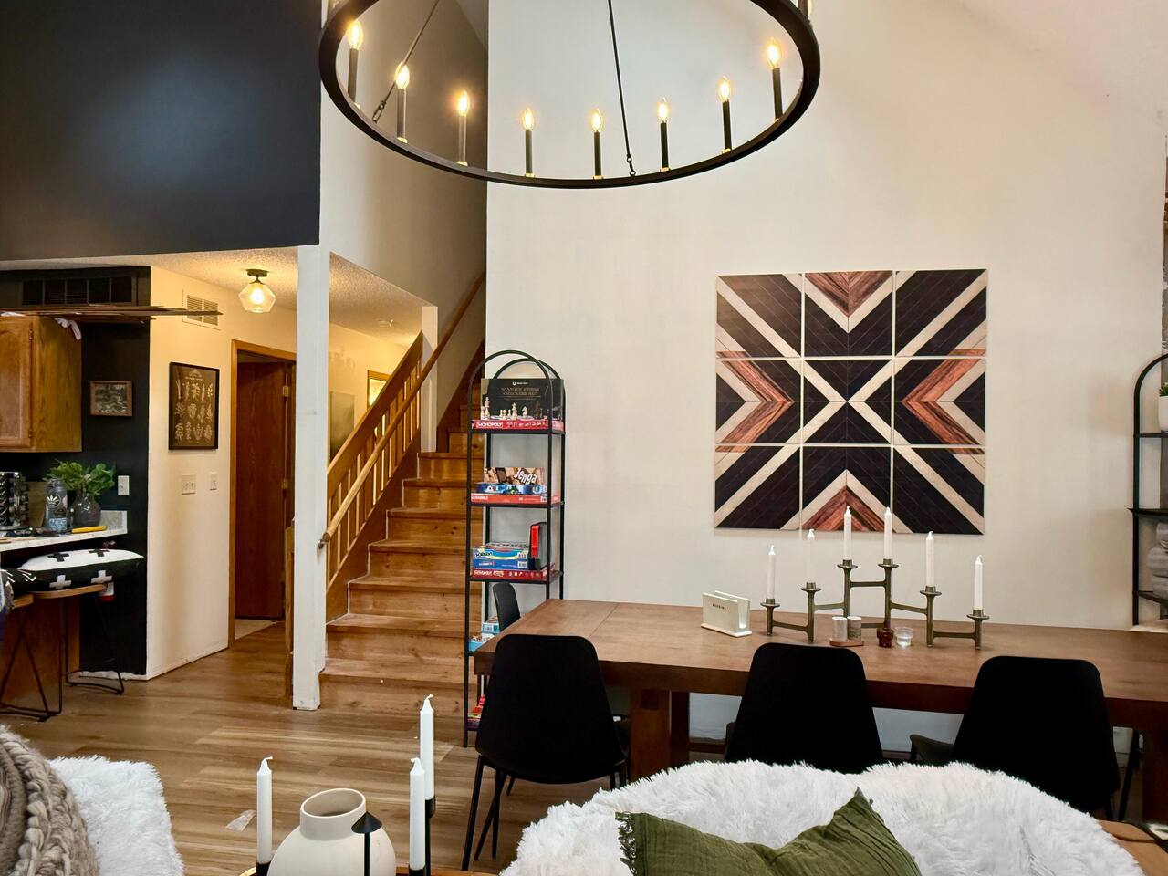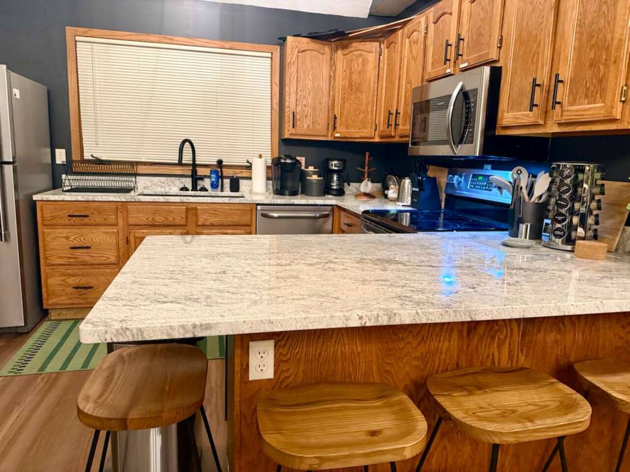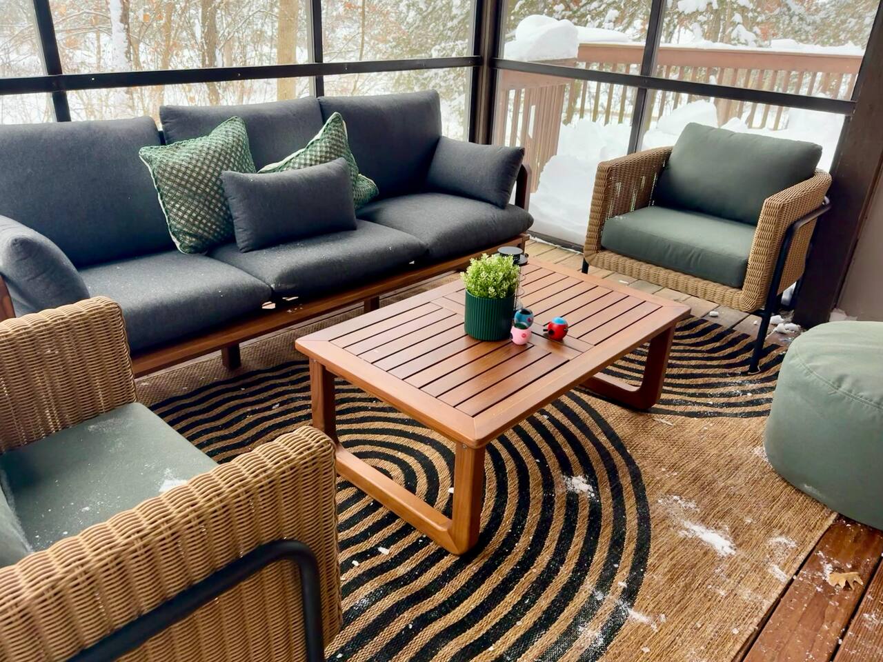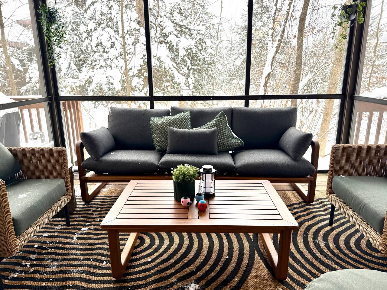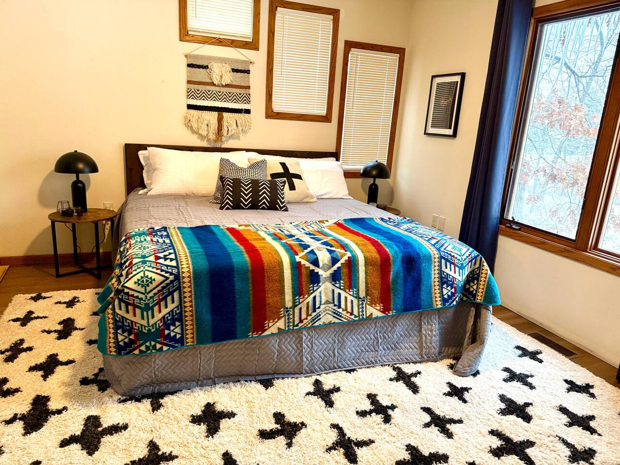 Ideal for large families or multiple couples | Family-run | Private wooded setting | Hot tub | Fast WiFi | Paved road access | Indoor gas fireplace | Free breakfast ----------------------------------------------------------- Welcome to Canterbury Peaks, a cozy 4-bed, 4-bath cabin retreat designed for families and groups who want the perfect blend of comfort, adventure, and togetherness. Thoughtfully styled with a warm, atmospheric cabin aesthetic by akm designs, this home offers inviting gathering spaces, family-friendly amenities, and plenty of room for everyone to relax and play. ----------------------------------------------------------- Designed for Families & Groups Step inside to a wide-open living + dining + kitchen layout that brings everyone together. The large dining table seats 10 comfortably—perfect for shared meals, holiday feasts, or long board-game nights! The living room offers plush seating for 8+, a cozy gas fireplace, 65" TV, and a digital infinity game table with dozens of board games that keep all ages entertained. Also enjoying strumming a few tunes on the guitar (Christmas and Campfire music books available) or listening to some vintage tunes on the record player! ----------------------------------------------------------- Fully Equipped Kitchen + Free Breakfast Cook with ease in a fully stocked kitchen featuring stainless steel appliances, waffle maker, blender, spices, and both Keurig and drip coffee makers. Start your morning with free waffle mix and syrup—a family favorite! ----------------------------------------------------------- Spacious Bedrooms for Everyone -Primary Suite: King bed, desk, jetted tub, and walk-in shower -Bedroom 2: King bed + hall bath with tub/shower -Bedroom 3: King bed, desk/workspace + attached bath with tub/shower. -Bedroom 4 (Kids’ Bunk Room): Two bunk beds, 2 TVs, 2 Xbox consoles with Game Pass, and a classic arcade machine with 10 games—endless fun for kids and teens. Bathroom in hall with tub/shower. ----------------------------------------------------------- Outdoor Fun & Relaxation Spread out across 1 private acre of wooded scenery. Enjoy: -A bubbling hot tub for post-ski or post-hike relaxation -Patio table seating 10 + grill for easy meals outside -A screened porch with cozy seating for 8+ -A large deck with games and play space -A future (Spring 2026) gas fire pit area with seating for 8+ -Tons of yard games—bocce, croquet, giant Connect 4, disc golf, bowling, yard dice, Kan Jam & more! ----------------------------------------------------------- Family-Friendly Comfort We’ve made traveling with young kids easy—with: -High chair -Pack ’n play -Baby bath -Kid-safe plates, bowls, cups & utensils -Toddler toys -Flat outdoor areas for safe play ----------------------------------------------------------- The Perfect Base for Galena Territory Adventures Whether you're planning a multi-family getaway, couples’ trip, or a big family gathering, Canterbury Peaks puts you close to golfing, hiking, skiing at Chestnut Mountain, horseback riding, pickleball, boating, and scenic trails. Create unforgettable memories in a space designed for joy, comfort, and connection. Your Galena Territory adventure starts at Canterbury Peaks!